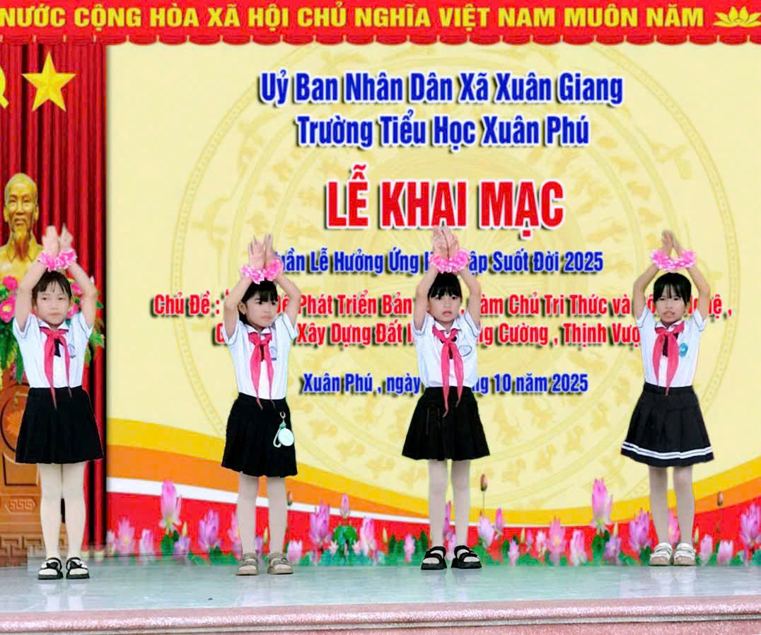 Thực hiện Kế hoạch số 82/KH-UBND ngày 25/9/2025 của Uỷ ban nhân dân tỉnh Ninh Bình về việc tổ chức Tuần lễ hưởng ứng học tập suốt đời năm 2025, trường Tiểu học Xuân Phú đã tổ chức “Tuần lễ hưởng ứng học tập suốt đời” năm 2025 với chủ đề “Học để phát triển bản thân, làm chủ tri thức và công nghệ, góp phần xây dựng đất nước hùng cường, thịnh vượng” vào ngày 06 tháng 10 năm 2025.